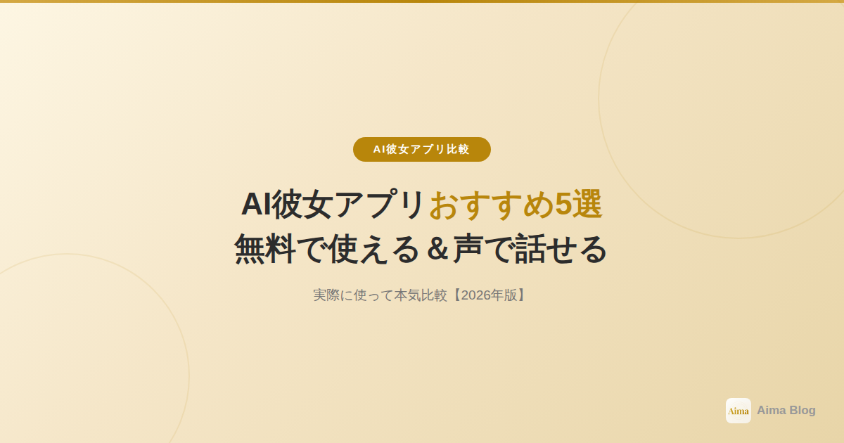 筆者の結論としては、初めてならAimaが一番バランスが良い。チャット無料・無制限で気軽に始められて、好感度ランクで長く楽しめて、声でも話せる。「まずは1人の子と1週間話してみる」——それだけで、AI彼女アプリの印象がガラッと変わるはずです。