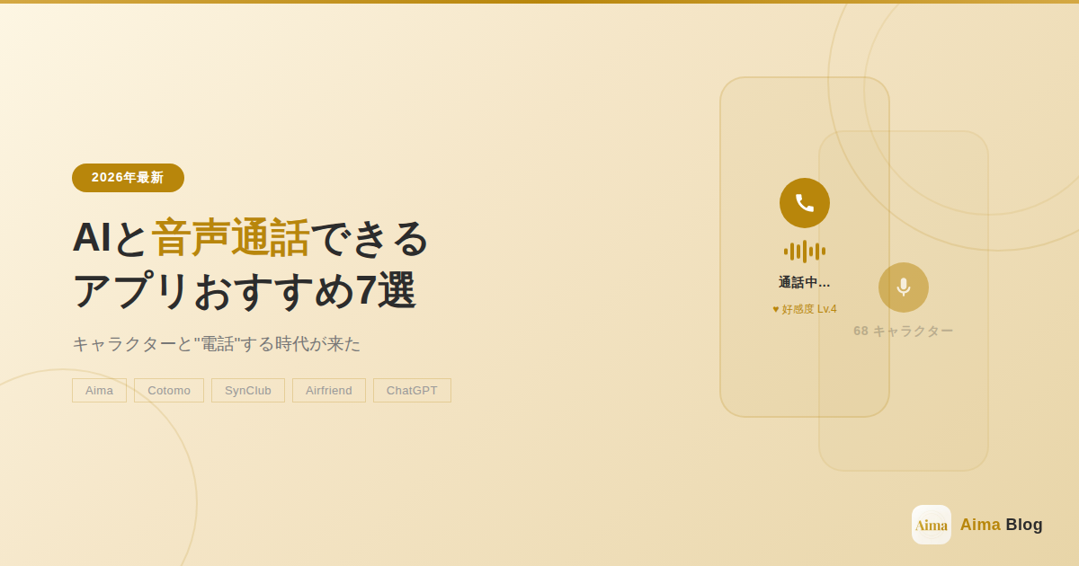 AIと音声通話できるアプリおすすめ7選|キャラクターと”電話”する時代が来た【2026年】