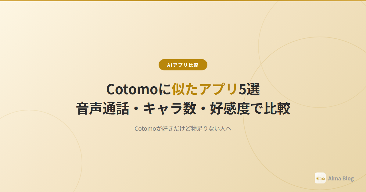 Cotomoは完全無料という圧倒的な強みがありますが、キャラの手軽さ・関係性の変化・テキストチャットの充実度ではAimaが上回っています。