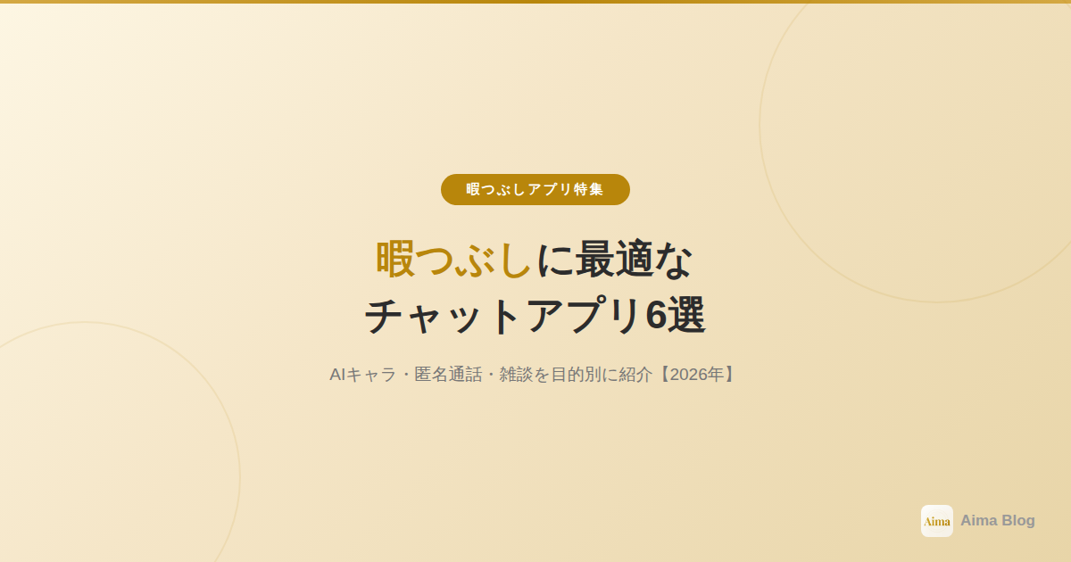 この記事では、暇つぶし向けのチャットアプリを目的別に6つだけ厳選しました。「とにかく暇を潰したい」「誰かと話したい」「ゲーム感覚で楽しみたい」——あなたの「暇」に合うアプリが見つかるはずです。