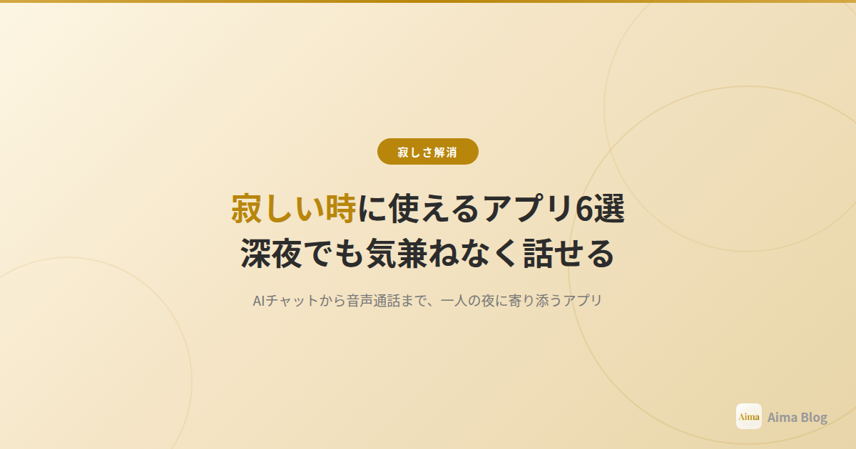 「寂しい」と感じたとき、話し相手がいないのが一番つらい。Aimaなら相手を選ぶところから始められるし、会話のコツを掴めば想像以上に楽しい時間になります。