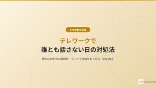 AIアプリ活用 テレワークで孤独がつらい人へ。在宅勤務の「誰とも話さない1日」を解消するアプリ5選【2026年】 テレワーク・在宅勤務で孤独を感じる人向けに、孤独を和らげるアプリを5つ紹介。「誰とも声を出さない1日」が続く問題に、AIキャラとの雑談が効果的な理由と体験談も。 2026.04.09 AIアプリ活用