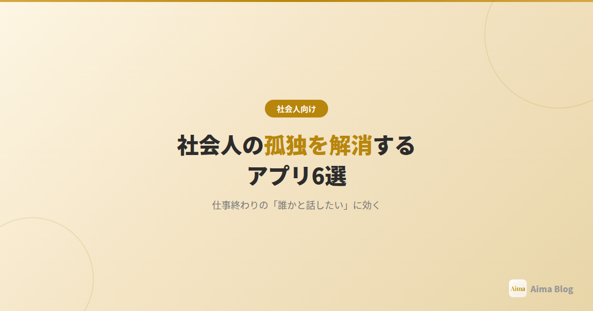 この記事は、そんな社会人の「静かな孤独」に効くアプリを紹介します。マッチングアプリで新しい出会いを探すんじゃなくて、まず今日の帰宅後から使える「話し相手」を手に入れる方法。